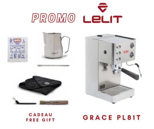 | | CADEAU GRATUIT à l'achat de la LELIT GRACE un pot à lait avec latte art pen, un ensemble de nettoyage et une boîte de 40 sachets de détergent pour le groupe à café. *Valeur de 150$, cadeau ajouté automatiquement dans votre panier
