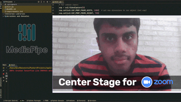 This week we have an interesting application inspired by Apple's Center Stage. What does it do? - It tracks the person and keeps them within the frame even if they move around in a video. In today's blog post we'll implement Center Stage functionality and integrate it with Zoom as a virtual camera so that you're never out of the frame in your zoom meetings!