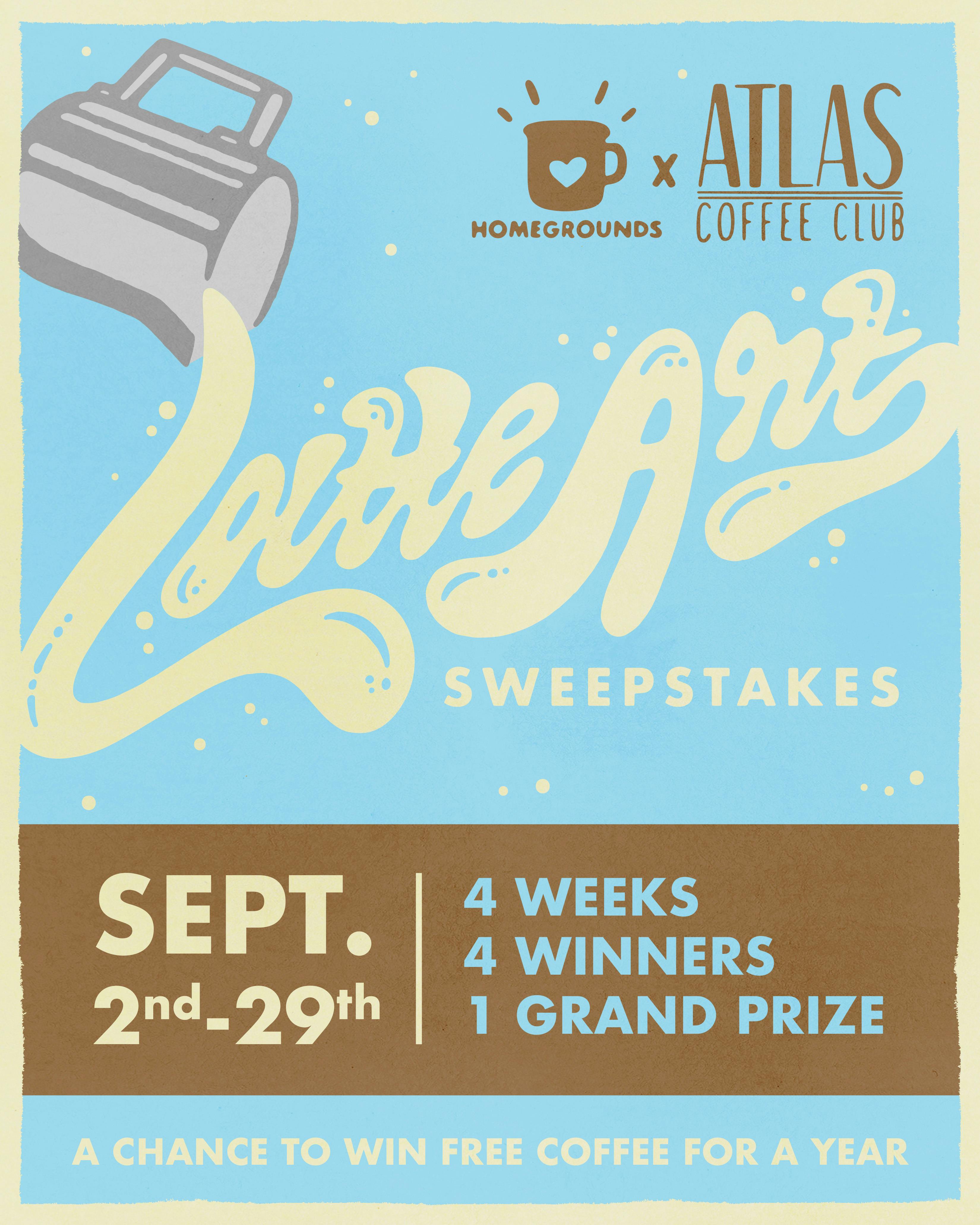 There will be a new winner chosen each week for the month of September, and a Grand Prize winner at the end of the month will recieve a full year of delicious coffee from Atlas Coffee Club.