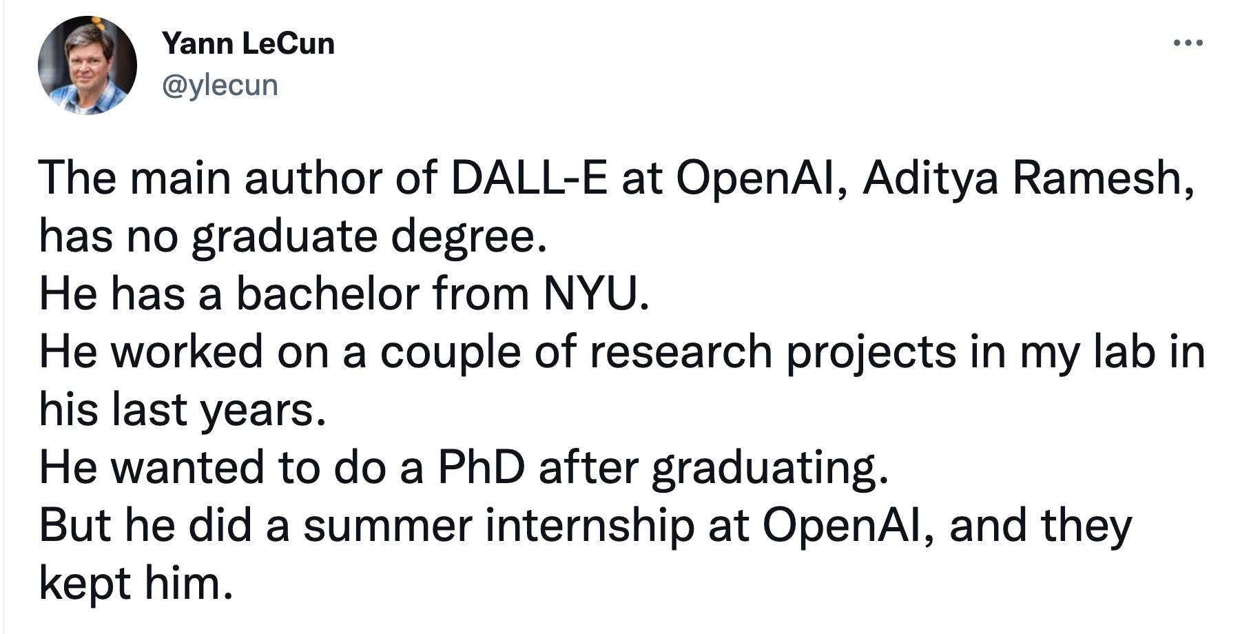 Some of you may have heard about DALL-E. It is OpenAI's text to image generator. Recently, Dr. Yann LeCun, who won a Turing Prize for his contributions to AI, tweeted the following.