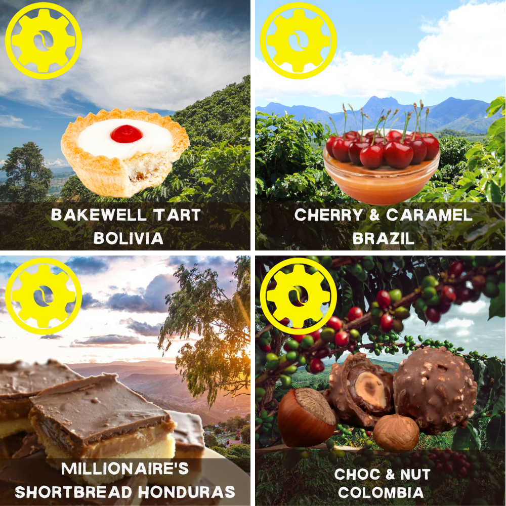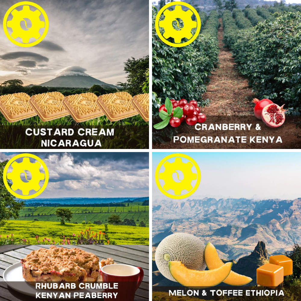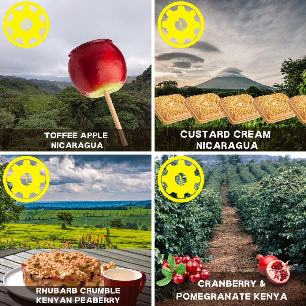 We've put together 7 different collections all of which you can see below. Each collection contains 4 x 250g bags of different coffees and each collection comes in a gift box with with all 4 bags laid out next to eachother with taste notes, bean varietals and more.